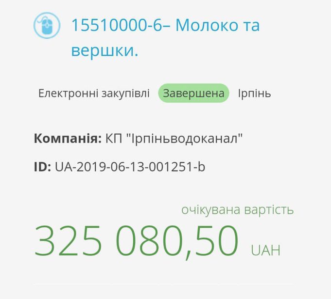 У той час коли люди масово скаржаться на відсутність та якість води в Ірпені, КП Ірпіньводоканал закупив молоко та вершки, у кількості 15 тисяч літрів. Відповідні документи оприлюднені на сайті Prozorro.
