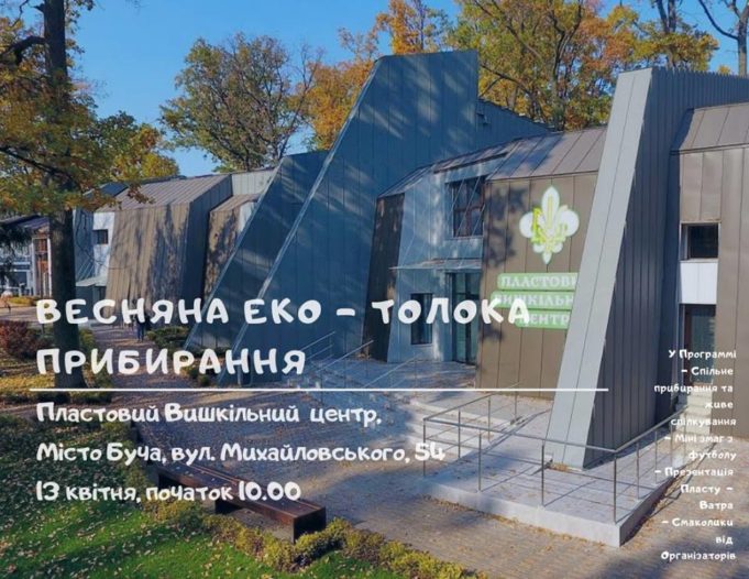 Пластовий центр, розташований у Бучі, у суботу, 13 квітня, запрошує всіх бажаючих на весняну толоку, яка розпочнеться о 10:00.